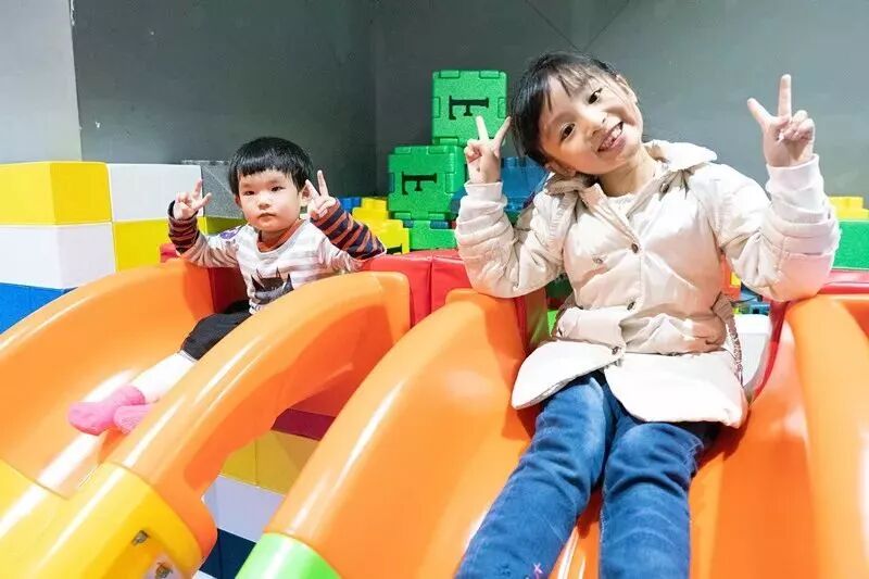 多种多样的滑梯 ,是宝贝们的最爱, 刺激十足 ,落进柔软的海绵中,又在海绵区中一秒窜起