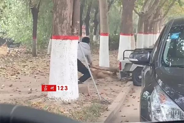 视频是霸州123的网友潘先生(化名)发来的。我们看到,在狗市路边一只狗被拴在路边,安静温顺地趴在地上。一个穿灰色外套的男子拿着一根又粗又长的木头杠子对着它挥舞了几下之后,突然蓄力冲着这只狗的脑袋狠狠地砸了下去。随着木棍的挥下,温顺的狗发出了撕裂般的惨叫,试图挣脱绳子逃跑却失败了……潘先生说:“这个视频是24号上午拍的,那天正好是霸州大集,当时我恰好把车停在狗市那就看见了这个事。那只狗当时就那么老老实实地趴在地上,我也没有想到下一秒那个男的会用木头杠子砸狗的脑袋。第一下砸中之后狗并没死,而是发出一阵阵惨叫,随后疯狂逃跑,但始终挣脱不了绳子的束缚,看到这一幕我真的有点受不了。”