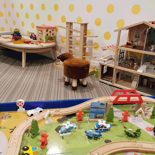 角落里摆放着一排儿童桌椅,特别适合有小宝宝的一家三口,随时可以取用。餐厅还特别贴心的为哺乳妈妈们准备了母婴室,每天不间断清理消毒三至四次卫生状态及配备都不错哦。店内所有设置全从孩子出发。地板一天清洁3-4次,玩具每天不间断消毒3-4次。让宝宝们玩的同时,学会讲究卫生~
