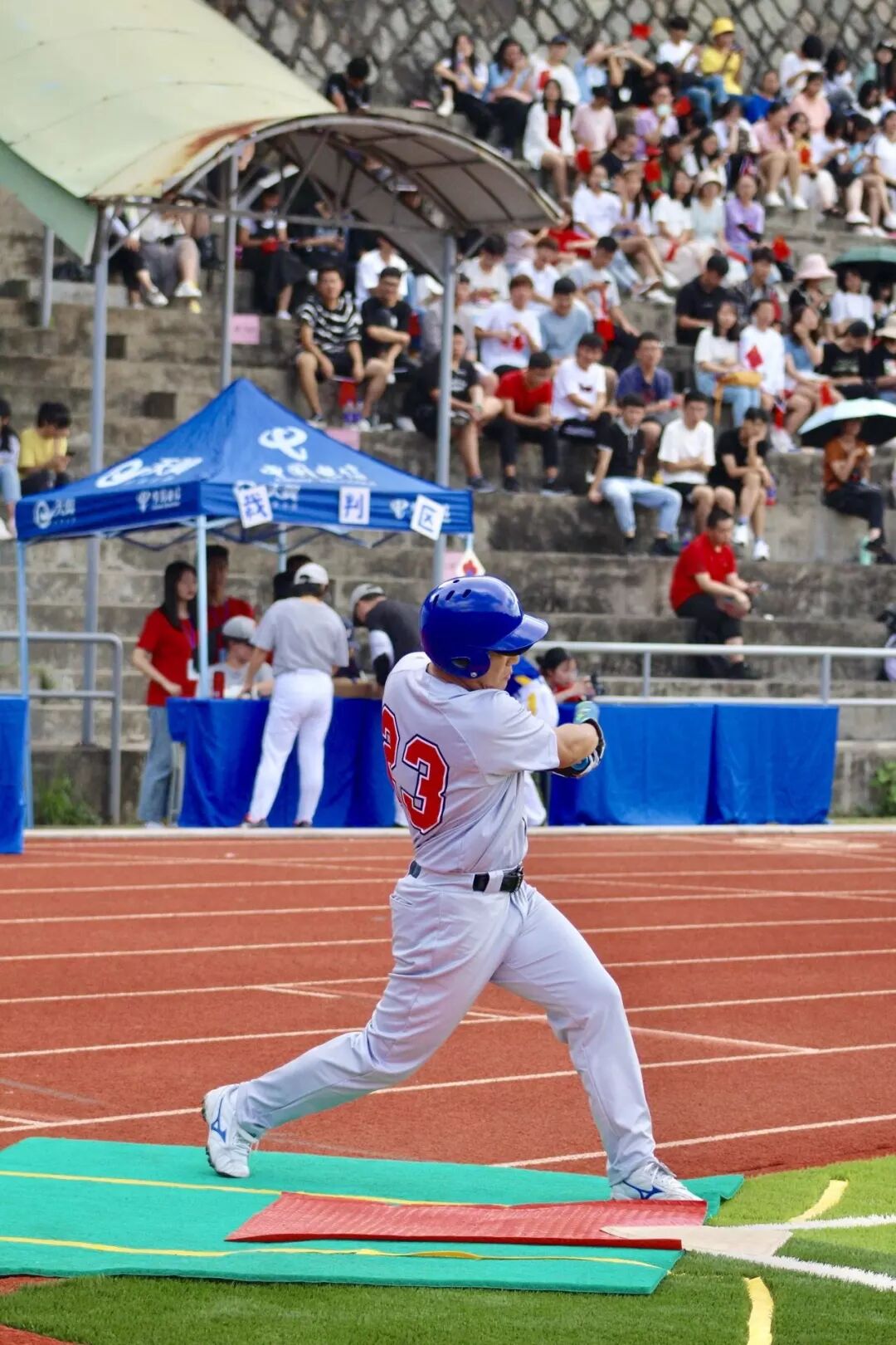 在鳝溪校区的田径场上