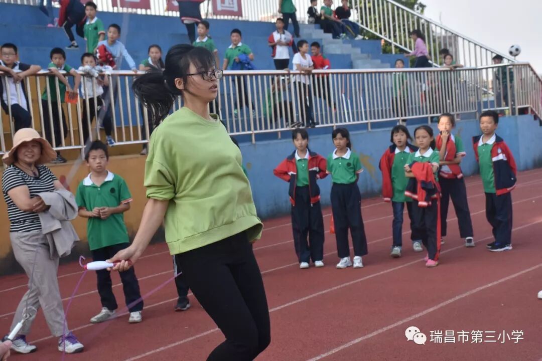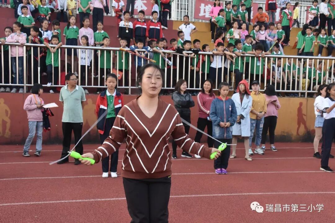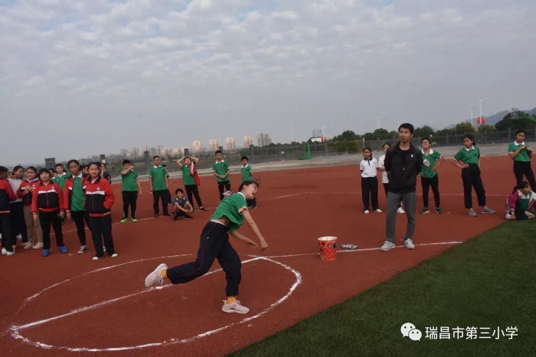 10月23日上午,瑞昌市第三小学第四届体育节田径运动会激情开启。本次运动会项目多样,学生组有一分钟跳绳、跳远、一分钟仰卧起坐、投掷沙包、投掷垒球等田赛项目,有50米、100米、200米等径赛项目;有低年级组迎面50米接力赛,高年级组的4X50米混合接力赛;教师组有一分钟跳绳、1500米长跑,五人六足50米趣味运动。这些丰富多彩的体育健身项目,增强了师生们的健体意识,培养了大家的集体荣誉感和团队合作精神,营造出了浓浓的校园体育文化氛围。
