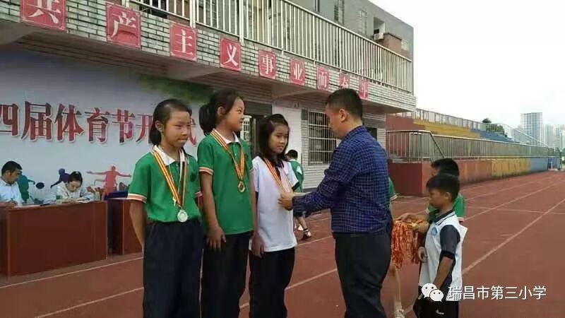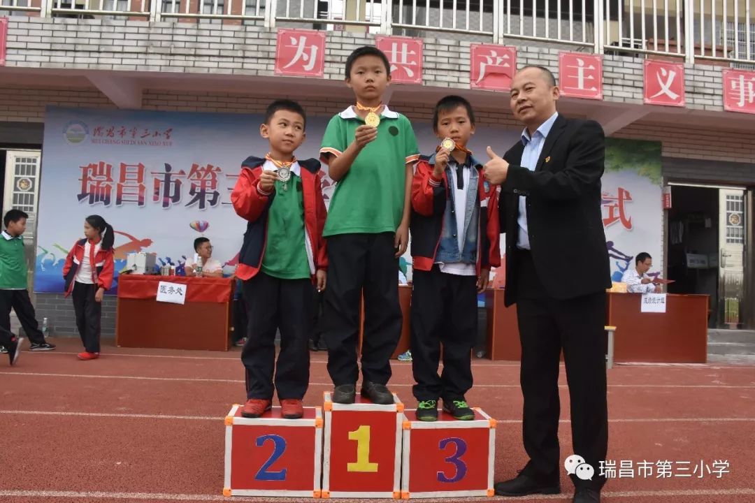 10月24日下午,全体师生在操场举行运动会闭幕式颁奖典礼,大会首先表彰了各项活动中获奖的班级和个人,并为他们进行了现场颁奖。最后,学校领导致闭幕词,至此,2019年瑞昌市第三小学第四届体育运动节田径运动会胜利闭幕。