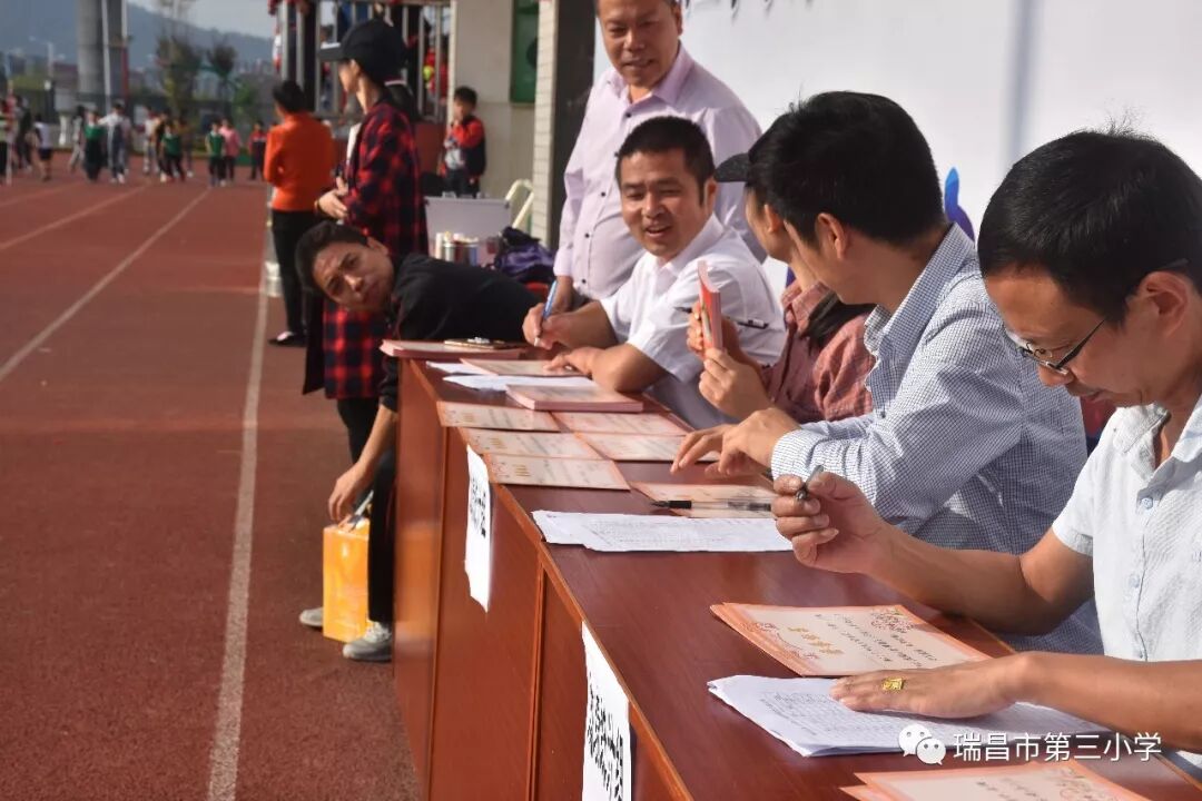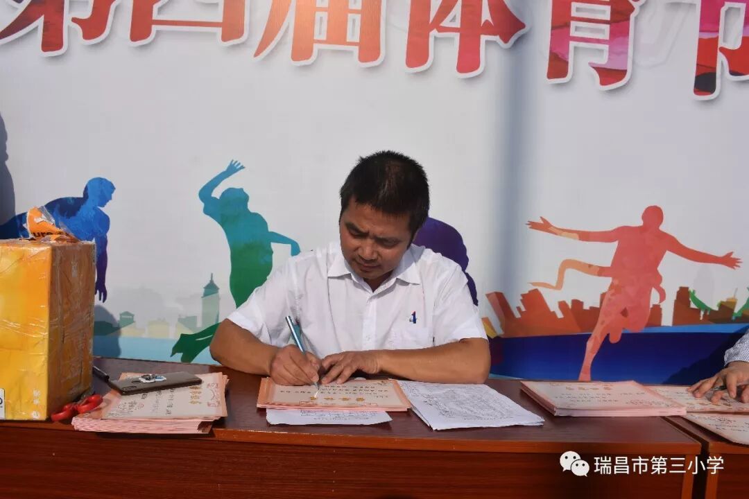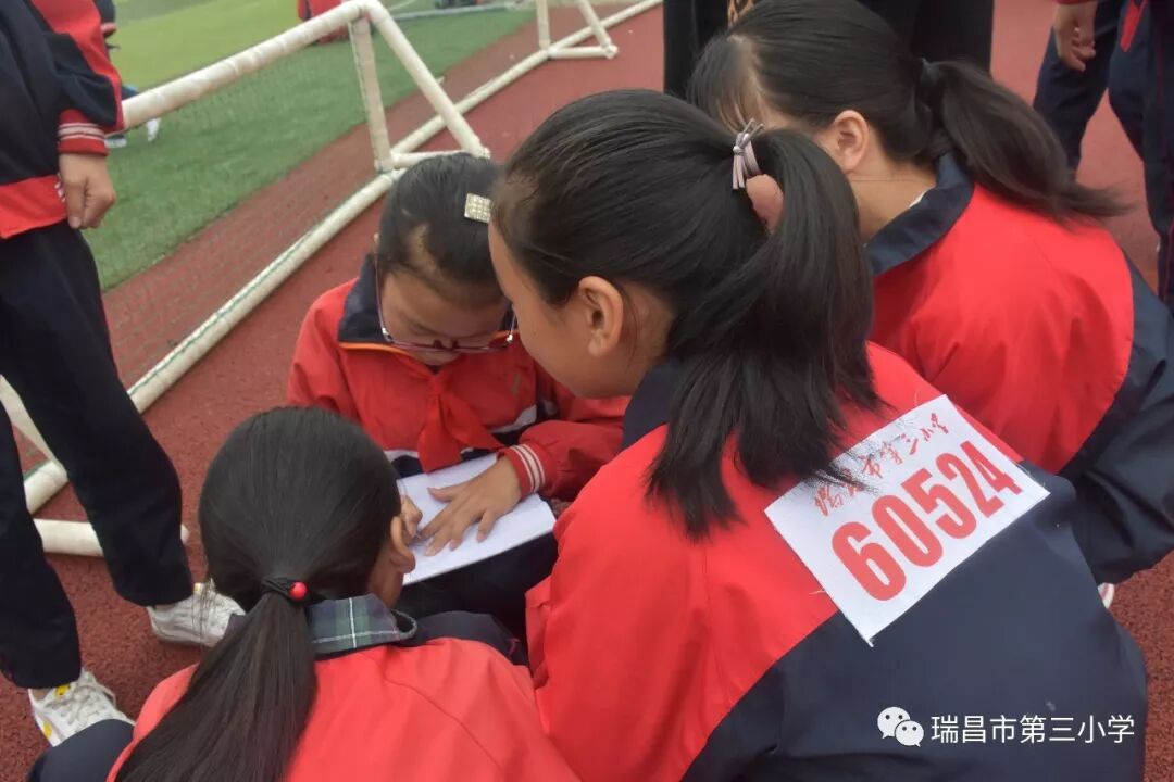 全体裁判员,严守规程,公平准确 裁判。统计组老师,统计出成绩,在荣誉证书上秀出他们刚健柔美的一手好字。医务处蔡老师把云南白药、云南红药、消毒药水等备在医务箱,一刻不离地值守在赛场旁,为意外受伤的运动员送上应急救治。后勤、编排、宣传、安全、筹备组都是各司职,赛场上他们认真工作的身影频频出现。写作小能手们写上广播稿为运动健儿加油、祝贺。观赛的孩子们加油鼓劲声振奋人心。他们忠于职守,热情服务,保证了此次运动会的顺利完成。收获荣誉的运动员们是好样的,他们认真的身影也是美美的。