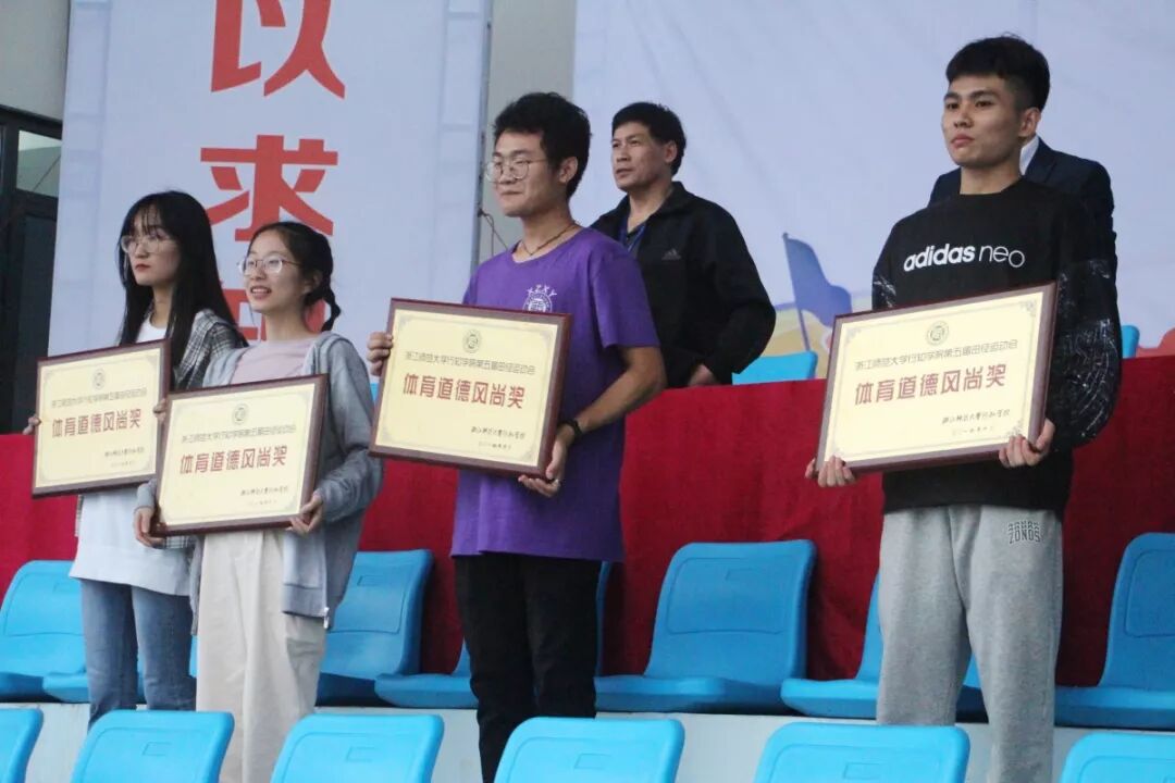 仪式伊始,由基础部主任吴立伟宣读各项奖项名单。本次运动会文学院的运动员获得了可喜的成绩。其中文学一队以团体总分172位列第五,阳光项目文学一队以38分获得第六名,广播操比赛文学二队、文学一队分别以92.8分和92.6分的优异成绩获得第三、五名。同时,文学一队荣获体育道德风尚奖。