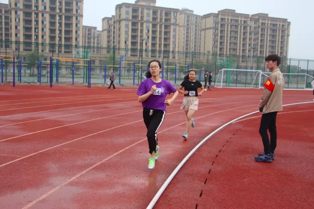 助跑、踏条、腾空、落地,跳远运动员们英姿洒脱,勇往直前。连绵的细雨,萧瑟的秋风,也拦不住她们破竹的锐气。即使摔在泥地里,滚了一身泥,她们也只是拍掉衣上的尘土,抖掉鞋中的细沙,回归队伍中准备下一次跳跃。其中林家琛和肖佳琦同学突出重围,进入决赛,分别获得第三名和第四名的优异成绩。