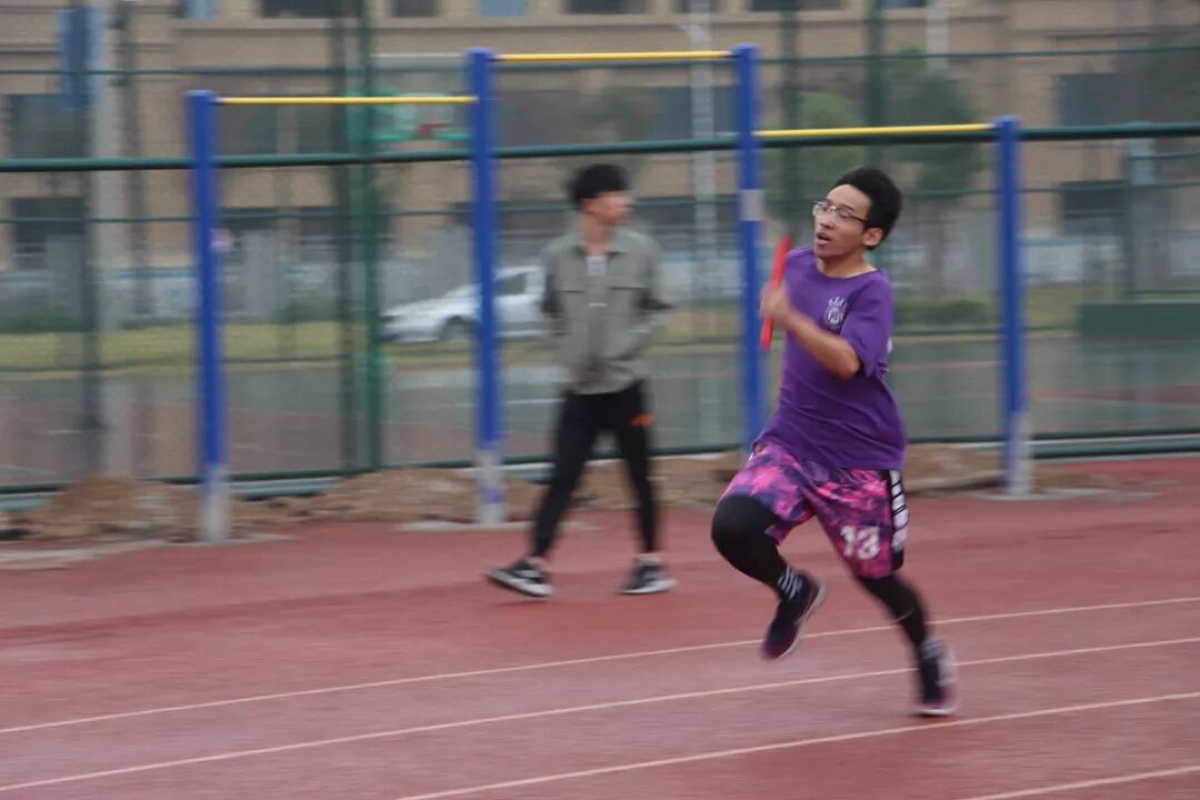 淡绿被嫩黄慢慢吞噬的时节,接力赛如火如荼地开展着。随着一声哨响,运动员纷纷冲出起跑线,有如离弦之箭,势不可挡。手与手触碰的时间虽然短暂,但掌心却留有余温。脚下的疾跑,面对面的相遇,顾不上迟疑,这就是体育的魅力。接棒、仰头、狂奔,紫色的身影在赛道间来回穿梭,与我们的心跳一起,此起彼伏。此刻这二十个人的心仿佛凝聚成了一团,他们用迅捷的身姿、坚定的眼神,告诉了我们什么叫做团结。