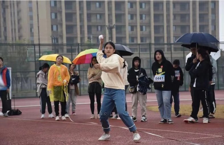 男子垒球作为上午的最后一场比赛,观赛的人少了很多,天空也下起了淅淅沥沥的小雨。然而文学院的运动员们并没有受此影响,他们选择全力以赴,助跑扔球动作利索,垒球在空中抛出了完美的弧线,加油,文学骄子!