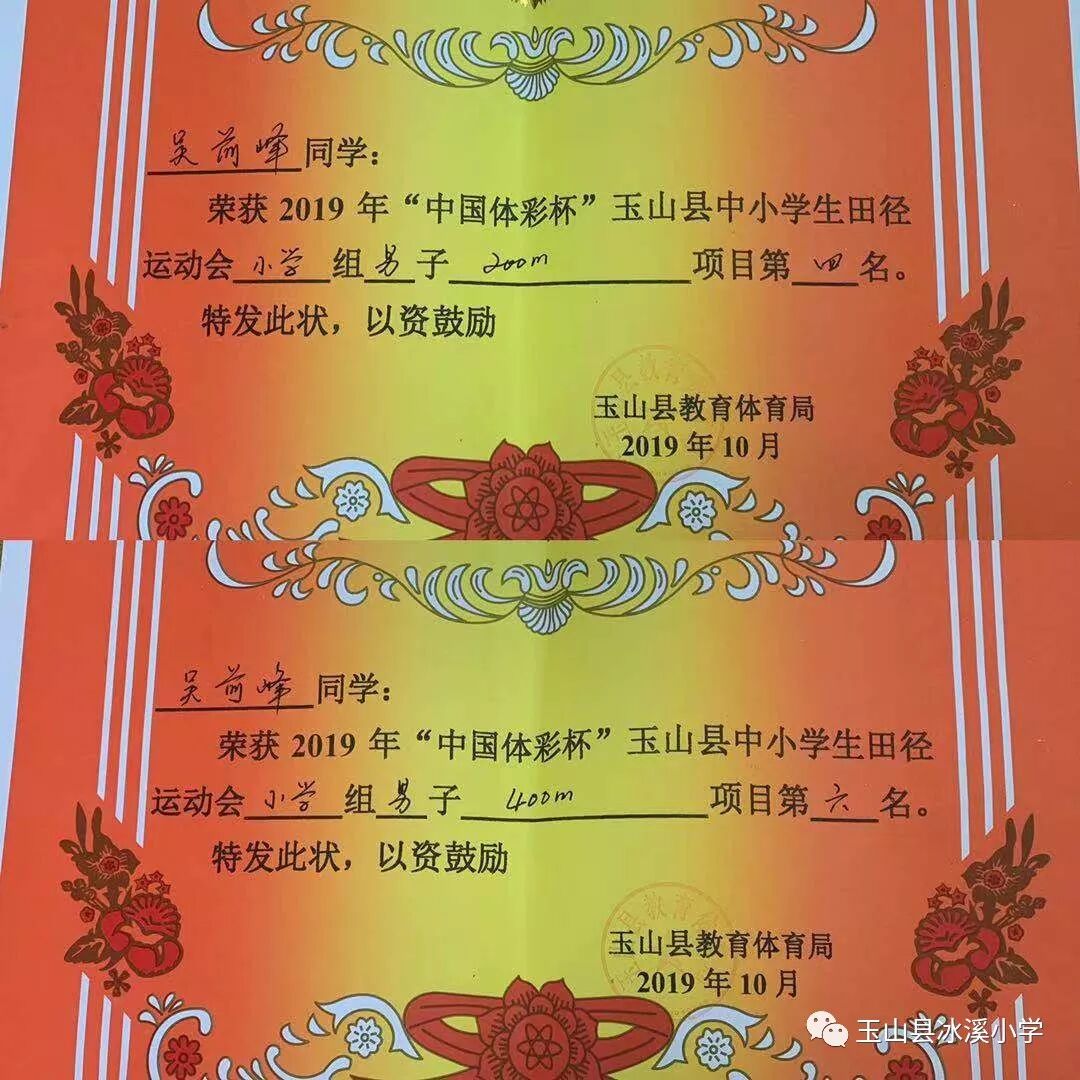 佳绩四:吴前峰同学在全县小学组男子200米跑步中夺得第四名,在全县小学组男子400米夺得第六名。