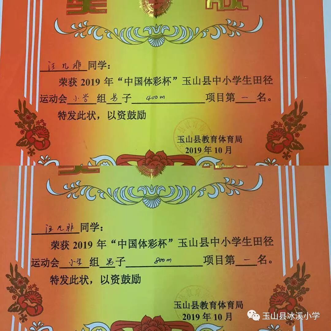 佳绩一:汪凡非同学在全县小学组男子400米跑步中夺得第一名,在全县小学组男子800米跑步中夺得第一名。