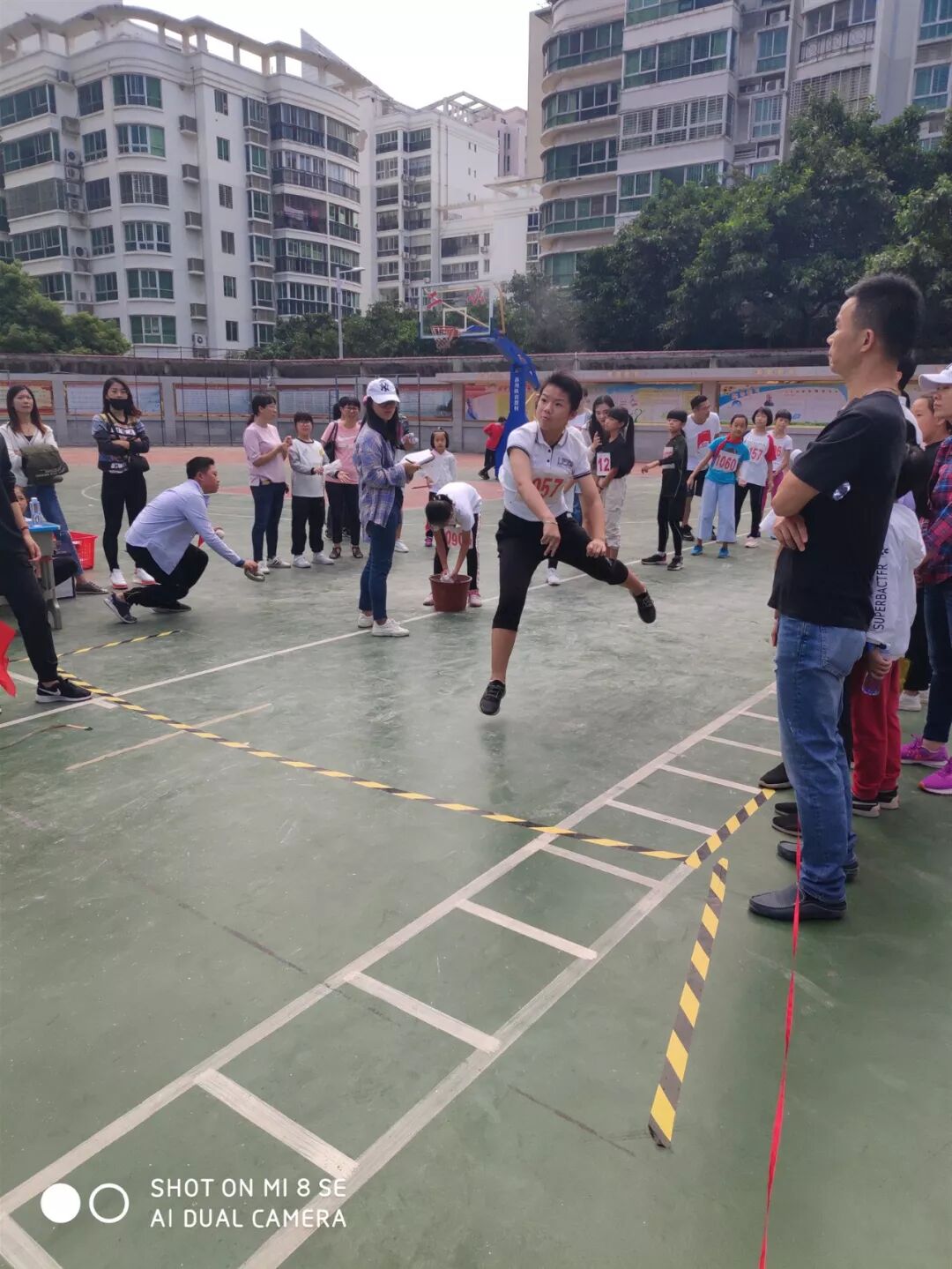 四年7班高灵子以3.54 m的成绩破学校四年级女子跳远纪录。