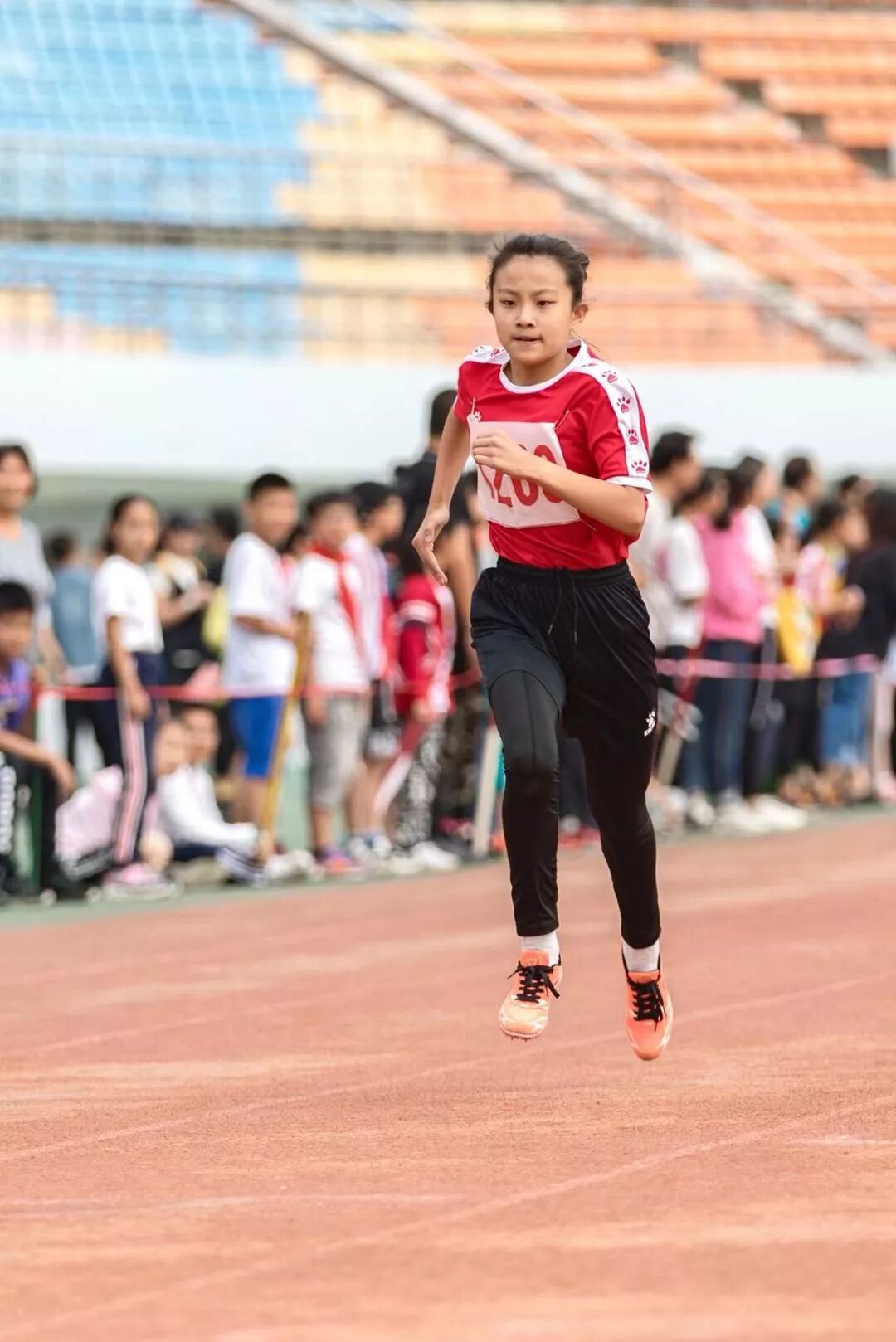 四年10班蔡榆萱以33’63的成绩破四年级女子200米纪录。