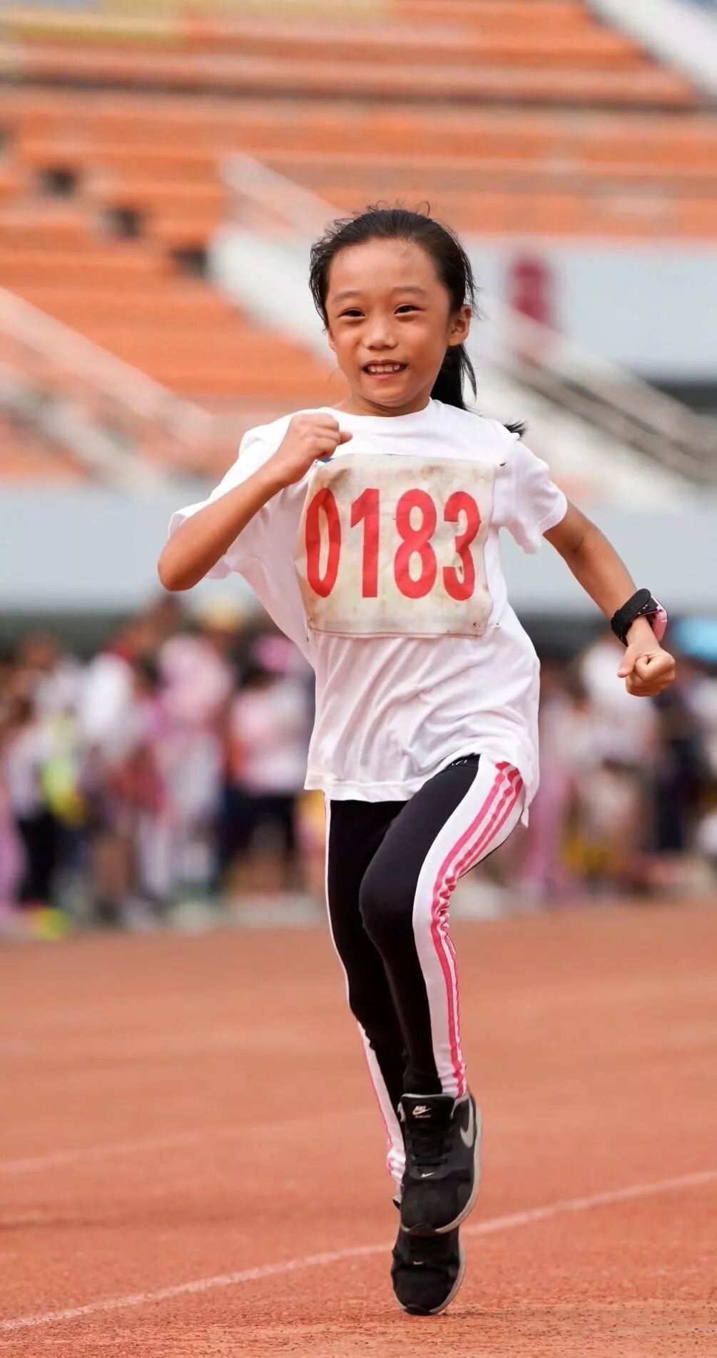 二年3班李妍以10’30的成绩破学校二年级女子60米纪录。