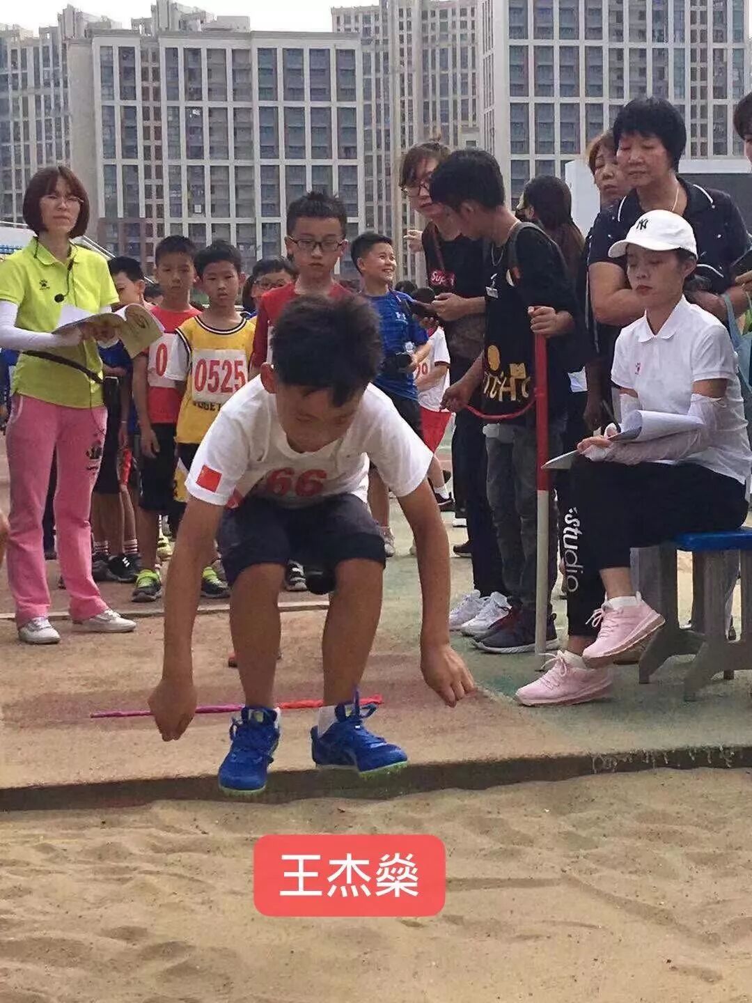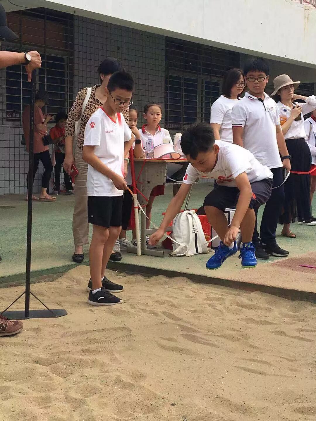 三年1班王杰燊以2.17 m的成绩破学校三年级男子立定跳远纪录。