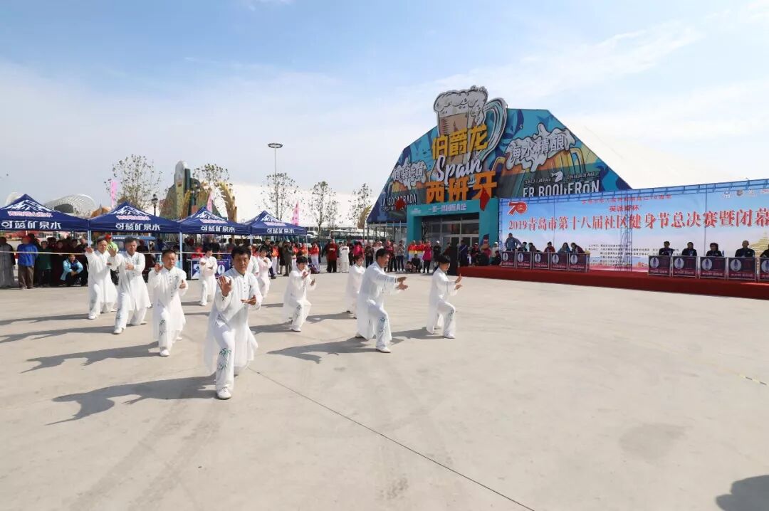10月26日上午,2019“英派斯杯”青岛市第十八届社区健身节总决赛暨闭幕式在西海岸新区金沙滩啤酒城中心广场成功举办。青岛市体育局、青岛市体育总会和各区市体育部门领导,赞助支持单位相关负责人出席了当天总决赛暨闭幕式,并在比赛结束后为获奖选手颁奖。共有来自全市的32支队伍448人参加健身球、健身舞、太极拳和太极功夫扇四个项目的决赛及展演。至此,历时36天的青岛市第十八届社区健身节展演活动圆满落下帷幕。