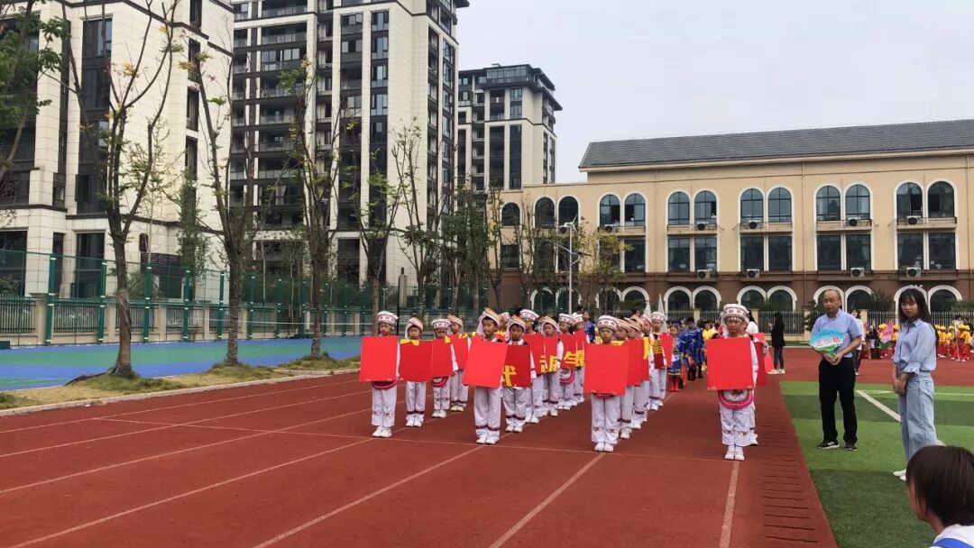 随着运动会的开始,方阵队依次入场,英姿飒爽的同学们,精神焕发的老师们,伴着进行曲的响起,他们迈着整齐的步伐向主席台走来,向我们展示了樾园人特有的精气神!