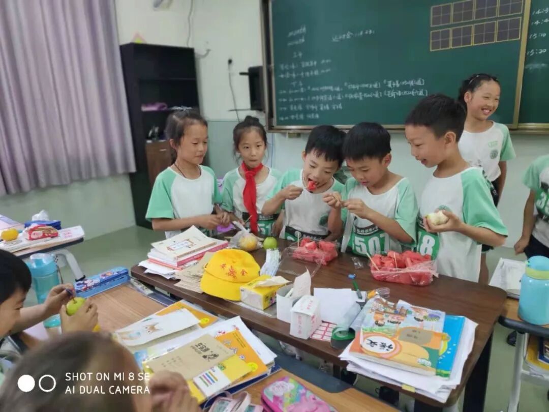还有运动员比赛结束后的水果加餐,还有家长志愿者和班主任老师带来的好多好多美味的点心和水果,孩子们吃得可开心了!