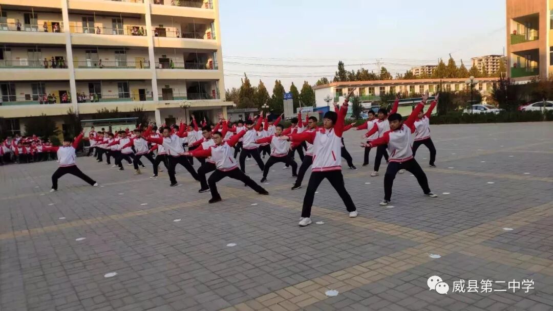 10月26日上午,初一年级组在综合楼前广场举行体操比赛。比赛内容包括广播体操和搏击操两项内容。
