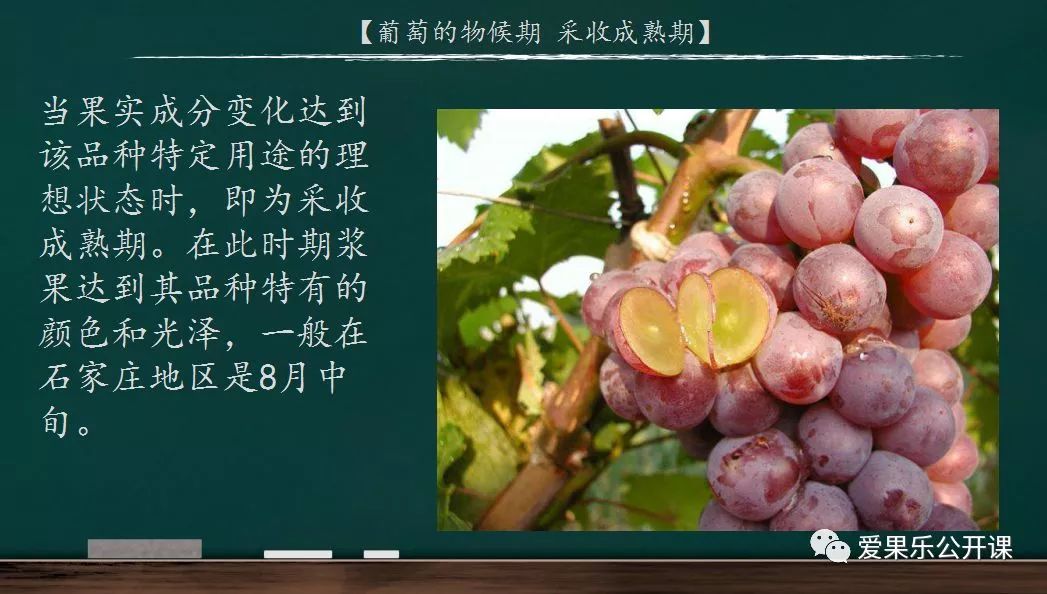 当果实成分变化达到该品种特定用途的理想状态时,即为采收成熟期。在此时期浆果达到其品种特有的颜色和光泽,一般在石家庄地区是8月中旬。