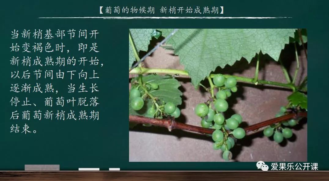 当新梢基部节间开始变褐色时,即是新梢成熟期的开始,以后节间由下向上逐渐成熟,当生长停止、葡萄叶脱落后葡萄新梢成熟期结束。