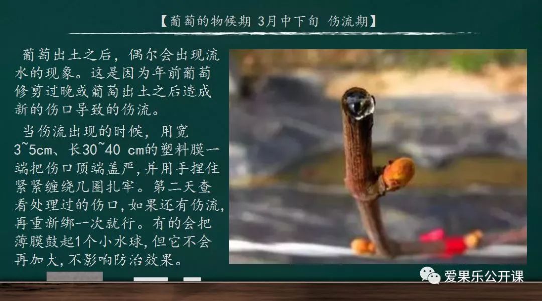 葡萄出土之后,偶尔会出现流水的现象。这是因为年前修剪过晚或葡萄出土之后造成新的伤口导致的伤流。