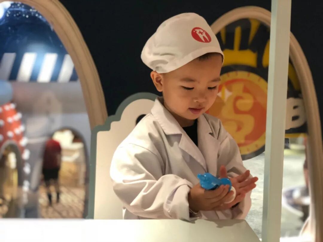 这个区域是偶然发现的,在厕所右前方的二楼,人不是很多,所以我跟麻麻玩的超级嗨!床上医生的衣服,其他小朋友作就诊病人,我可是个超级麻利的医生,毕竟在家已经演习了N次~打针是我的强项!