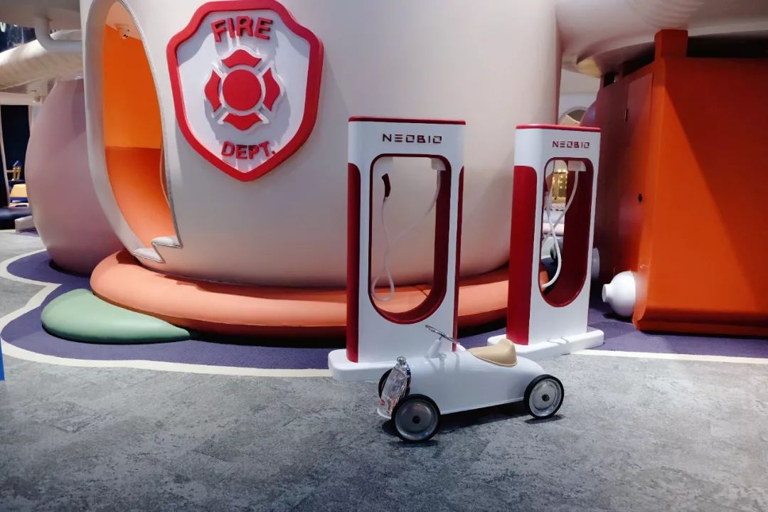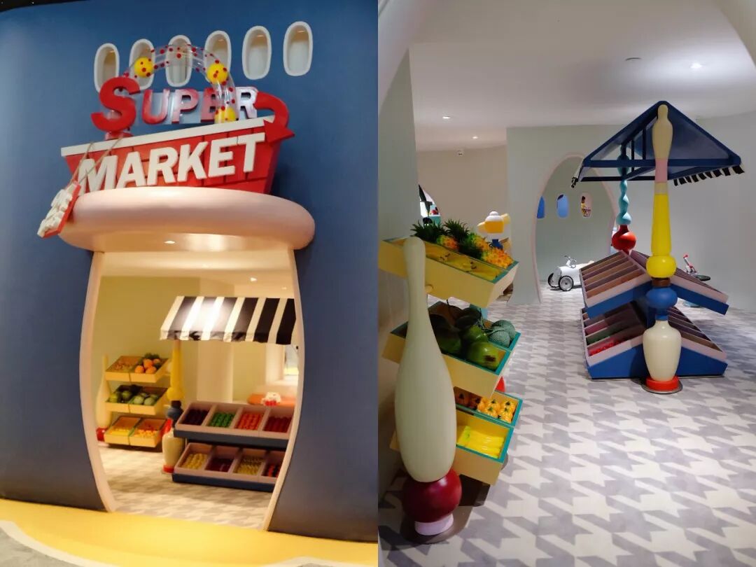 抬头看到的是熠熠星光~而且每个场馆前面都有停车场,小朋友们可以开车去“上班”呢!“往里面是过家家的小超市,厨房之类的,还有各种cosplay,小邮局等等”