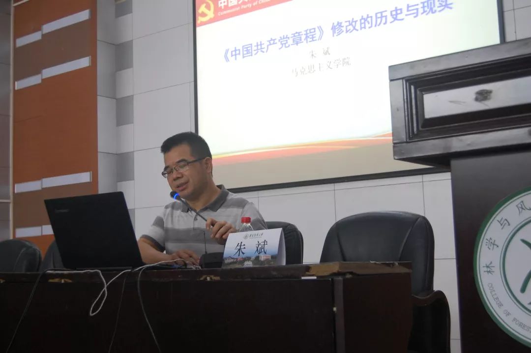 2019年10月26日晚上7:30,由朱斌副教授主讲的党课——《〈中国共产党章程〉修改的历史与现实》在林风学院127开讲。