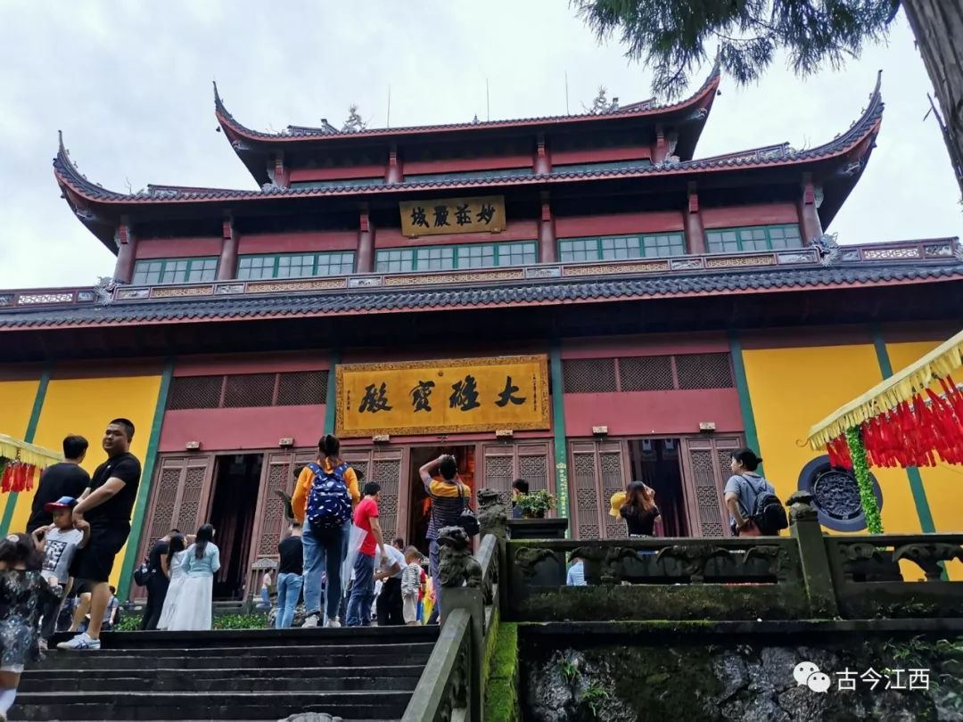 看到大雄宝殿,给我第一感觉就是楼阁高,有三层。一般寺庙是两层居多。二是匾额多,一排挂三副。三是佛像高,怪不得建三层。大雄宝殿内的释迦牟尼像,是我国目前最大的香樟木雕坐像。