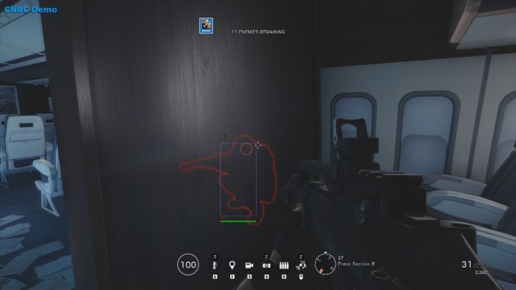 接受CNBC(全美广播公司财经频道)采访时,Bill展示了一段游戏《彩虹六号:围攻》的Demo,在这段Demo中,Bill可以轻易看穿墙壁后是否有敌人(透视),这在游戏中是十分明显的优势。