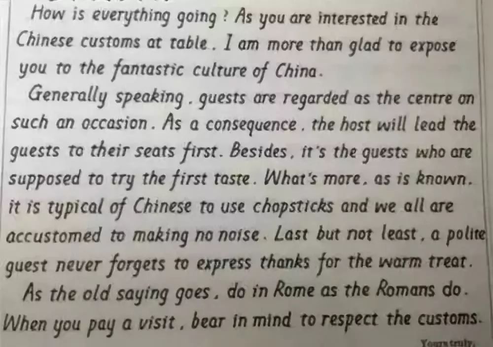 诚然,英语作文书写虽然不是最重要的,但是面对阅卷速度的限制,判卷老师可能也很无奈。于是我决定去改变我自己,忘不了坚持每天工工整整地抄一篇英语作文,还要面对付出与收获不成正比的打击—越练越低,打击过后还要继续练下去……终于,功夫不负有心人,我高考作文只扣了两分。如果我当时还在抱怨高考阅卷的不公平,继续抵触英语,那我现在很有可能就坐在衡中的教室里接着受苦。
