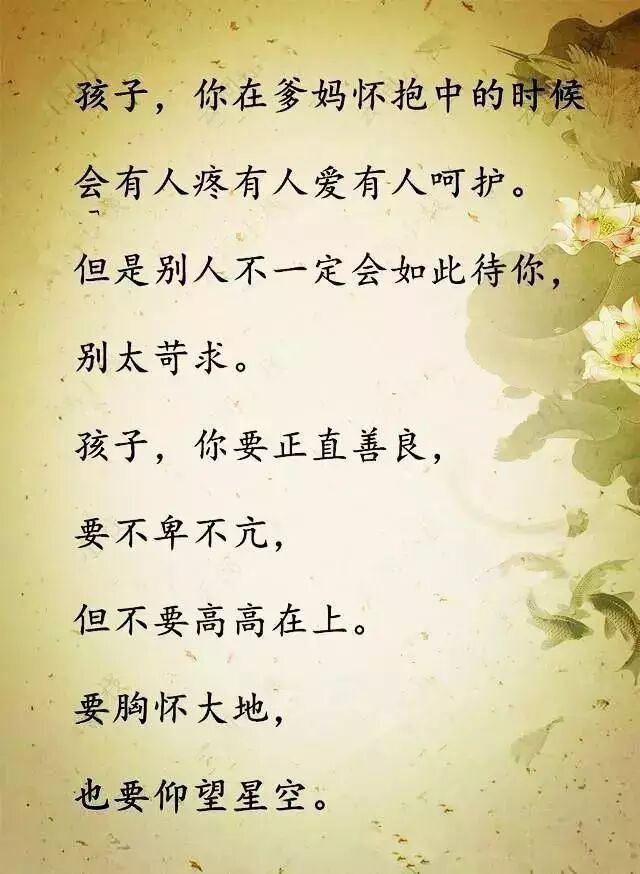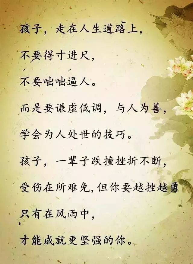 孩子,走在人生道路上要谦虚低调 ,与人为善
