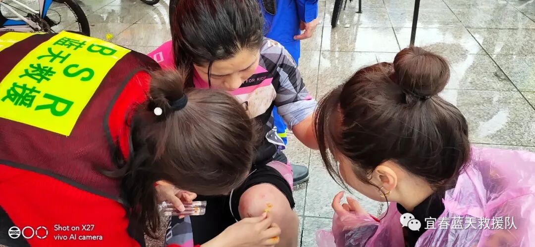 参加保障的队员“醒悟”“今天安排在最危险点,为了提前提醒比赛人员(请带刹车前面急转弯)我们3个人站在危险点的上点和另外一个公益组织的人在一起。忽然有人摔倒了我们3个直接冲向对方,返到点上时听到“哎呀,这吓死人,我都躲到一边几”。此时再次感到身为蓝天人的区别