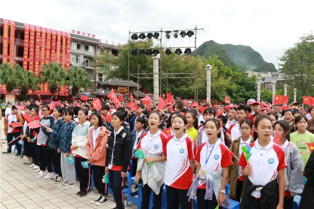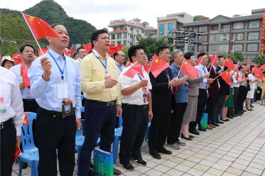 今年是新中国成立70周年,今天马山宾朋满座。开幕式最后,现场所有人员一同起立,共同高唱《歌唱祖国》。红旗招展、歌声嘹亮,人们一同欢庆新中国成立70周年、共同祝愿祖国更加繁荣富强。