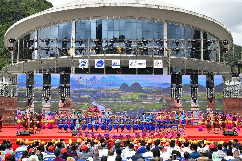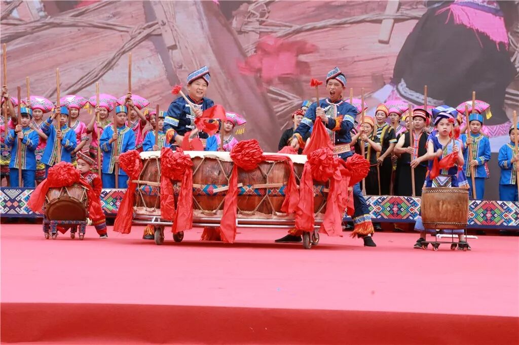 融入了壮族三声部民歌、会鼓、打扁担、壮族传扬歌马山文化四宝的风情表演《马山声音》拉开了开幕式文艺演出的序幕。马山民族民间文化底蕴丰厚,千百年来,马山人民在劳作过程中,酿造了“马山文化四宝”,伴随历史文化长河延伸,薪火相传,世代传承,如今誉满神州,走向世界,在新征程中发出了时代强音。