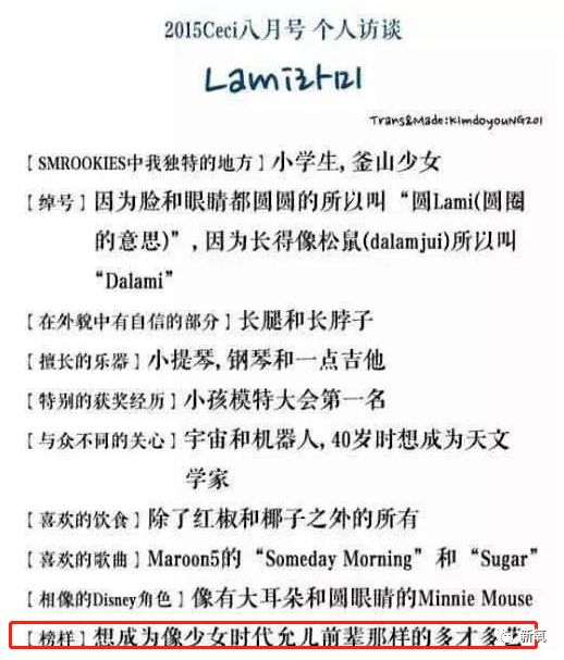 同时也有另一种声音说lami迟迟没有出道的原因是长残了,也有可能是去了演员部,或者她已经离开了SM公司了···