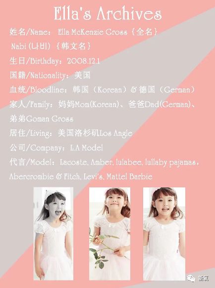 Ella Gross,2008年出生的女孩,今年也才11岁,因为爸爸是德国人的关系,让Ella拥有一张高关注度的脸和得天独厚的气质,她还有个很好听的韩国名字蝴蝶。