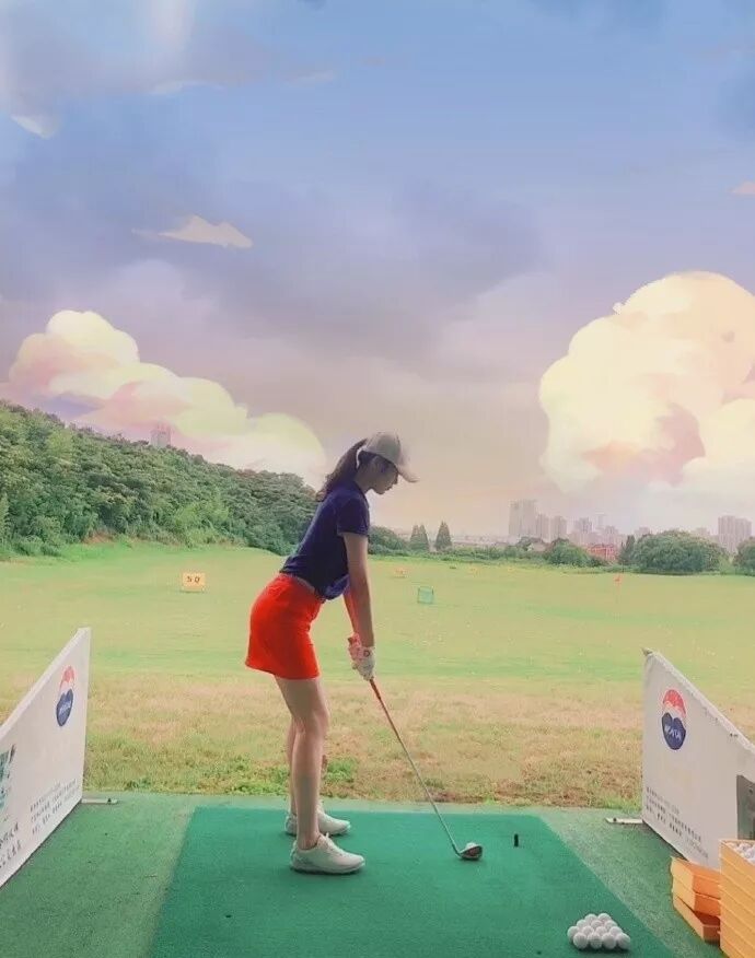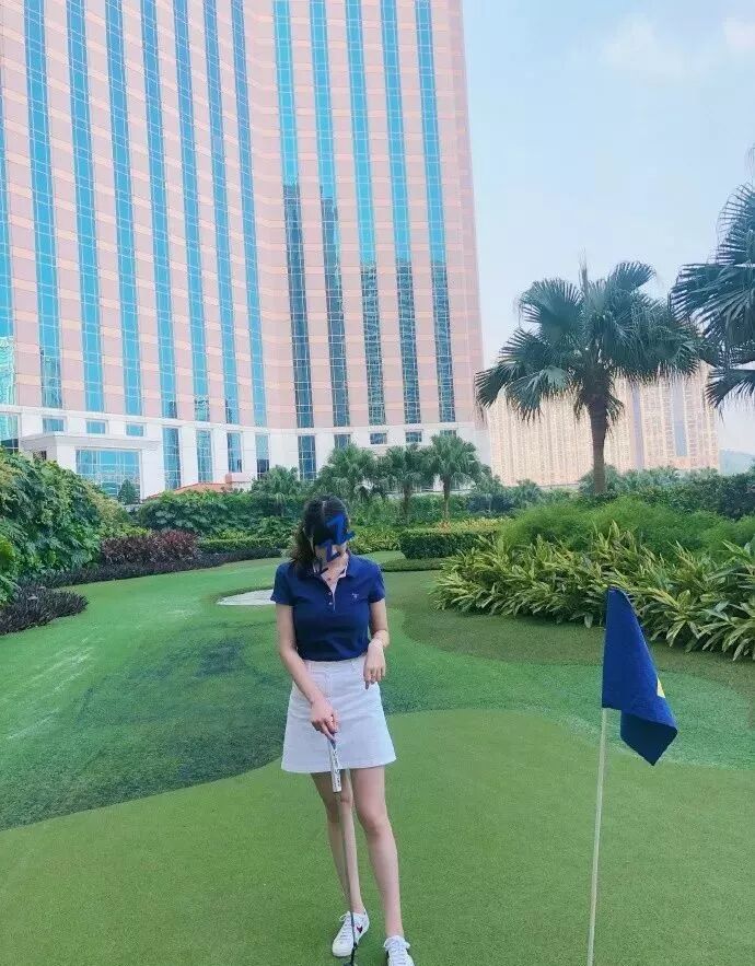 除了游泳之外女友的高尔夫水平也很高哦