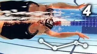 Theinteresting thing here is that Anna knows she should not be dropping her elbowin position 3 and yet is unable to stop it happening. Why? Because she istrying to keep her hand too near the surface at this point in the stroke anddespite her best intentions, as she rotates her body onto her left side she hasto drop her elbow to keep it near the surface. In comparison, take a look atAustralian elite swimmer Rhys Mainstone: