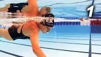 有意思的是,她知道不应该沉肘,但是还是无法控制。为什么?因为她试图让自己的手靠近水面,当她向左侧转动时,就不得不下沉肘部。与之对比,我们看看优秀选手是如何做的: