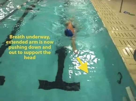 下次你去游泳的时候,注意你前面那只手臂在呼吸的时候是如何动作的。你能感到它是在向下压或者向外划吗?你是否感觉在呼吸时你的手臂下沉得很快?