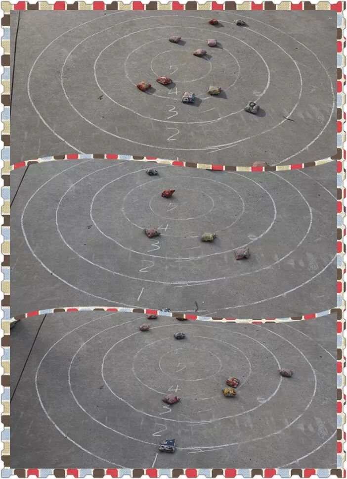 沙包打靶——把沙包掷向靶心,记每班选手们的得分总和。