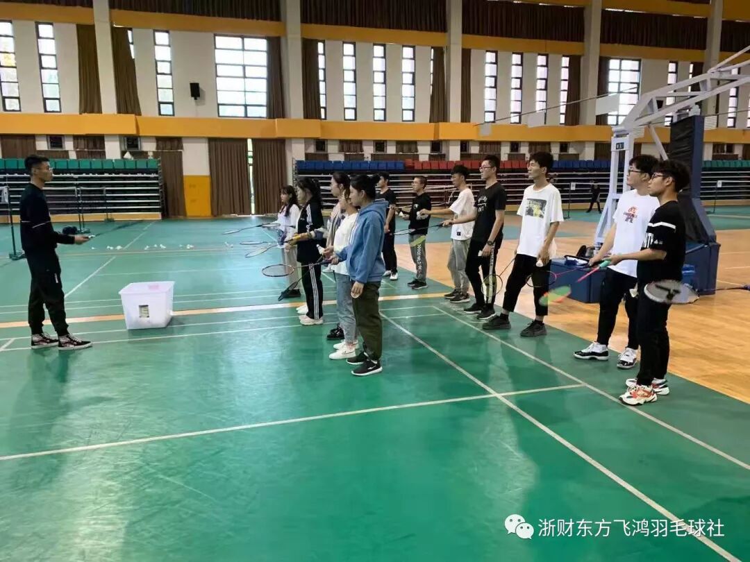 社员们日思月想的社团活动终于开始了,毕竟是第一天,新社员和老社员都显得格外积极,跃跃欲试。大家都穿着合适,装备齐全,乖乖排成一排,听着学长的讲解,大家一定都很想在羽毛球场上展现自我吧。羽毛球场上的激情可不亚于篮球场哦。小哥哥啥的可不止羽毛球场上有哦。鹅鹅鹅鹅鹅鹅。社长还教我们颠球和高远球,我们知道了发高远球的要领:击球前,左脚在前,右脚在后作为支撑点,侧身,挥拍时以肘为轴,大臂带动小臂后绕,主要靠小臂的挥动速度和手腕、手指的力量击球,当然还有转腰的力量。发力时要把重心放在右脚上。高远球的整个动作是侧身、蹬腿、转腰、挥臂、闪碗等要一气呵成。感觉特别充实,跟着社长再学习几节课,就能驰骋羽毛球场了。真是令人满意的下午,虽然有点劳累,但也快乐。