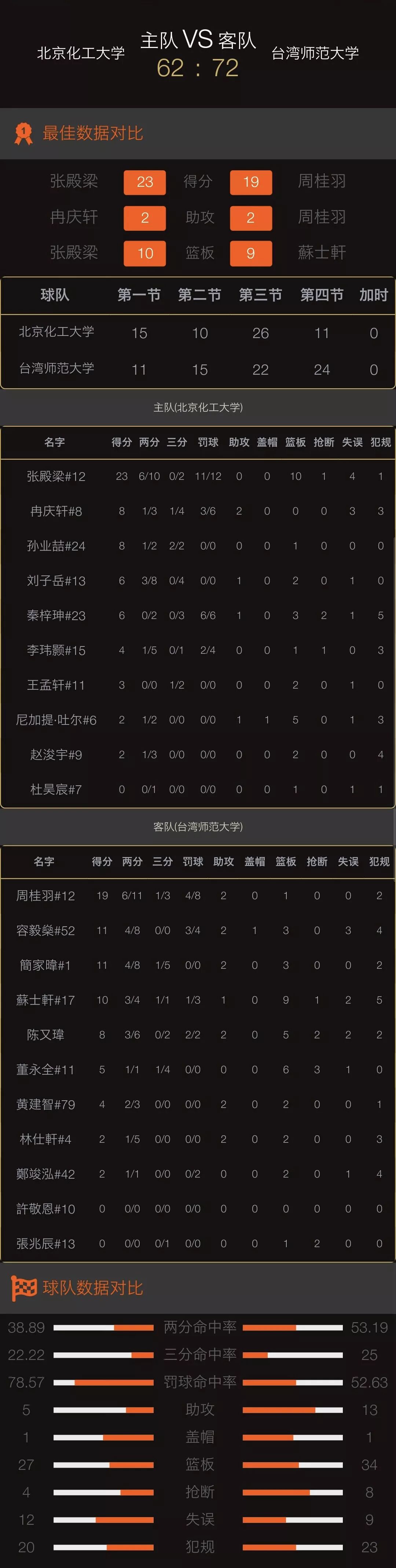 北京化工大学62:72台湾师范大学