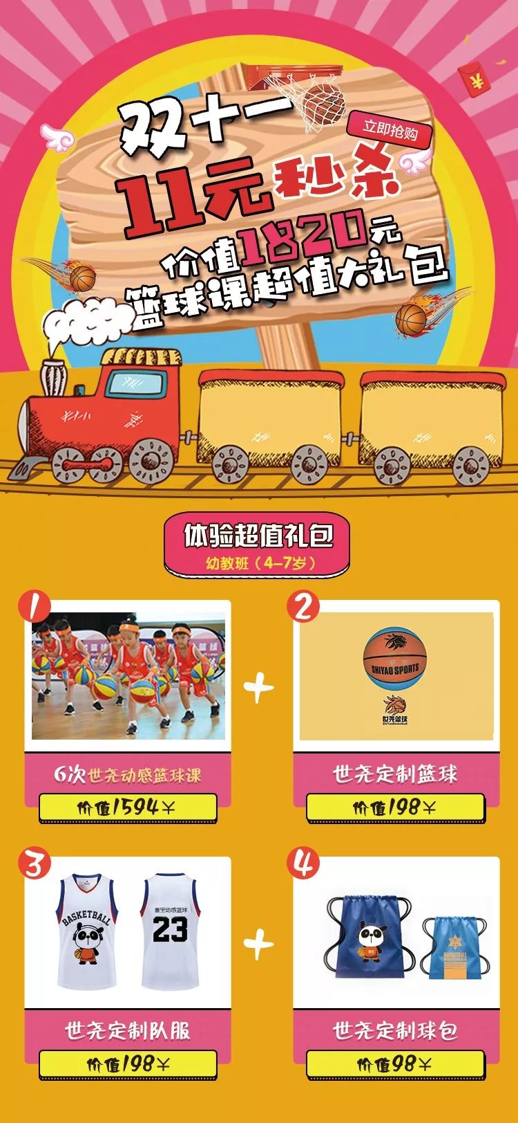 喜宝幼教班(4-7岁):喜宝幼教动感篮球课6次价值1594元+定制篮球价值198元+定制球包98元+定制队服128元(总价值1820元)
