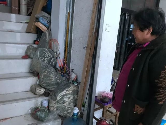 一旁杂货店里,十几块石头随意堆放在门口的台阶上,店主老太说石头都是儿子拿回来的,想要的话价格可以商量。
