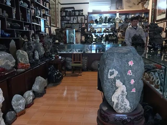 更多的小型奇石则“化整为零”,散落在大街小巷的各式门店里。