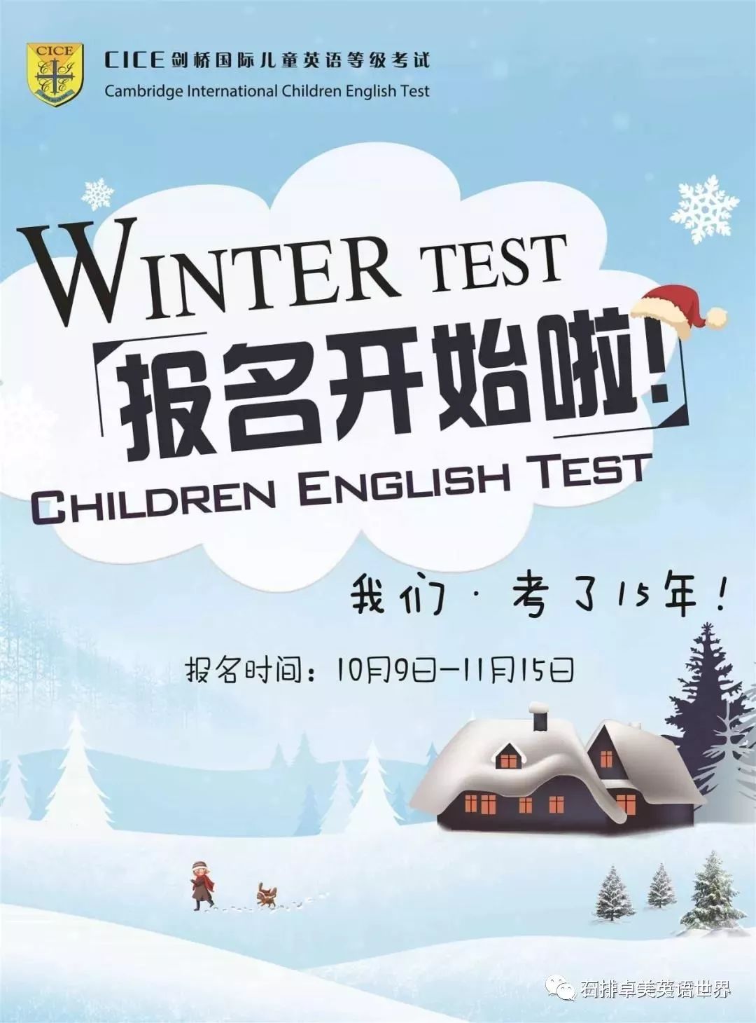 剑桥国际儿童英语等级考试 ( Cambridge International Children English Tests, 简称CICE 证书考试)是针对所有4-14岁学习者而进行的英语水平等级证书评定测试。