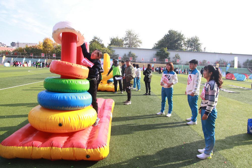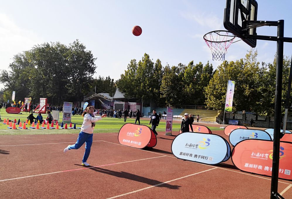 体育场内人声鼎沸、热闹非凡,足球射门、篮球速投、平衡前进、众星捧月等趣味运动项目围满了观赛的群众,参赛的运动员们奋勇争先、力创佳绩,团队项目勠力同心、配合默契,精彩的表现引来了一阵阵的欢呼叫好。在体育场的一角还设立了冰壶项目体验区,让跃跃欲试的观众们也能提前体验到冰雪运动项目的乐趣,拉近了大家与冬奥会的距离