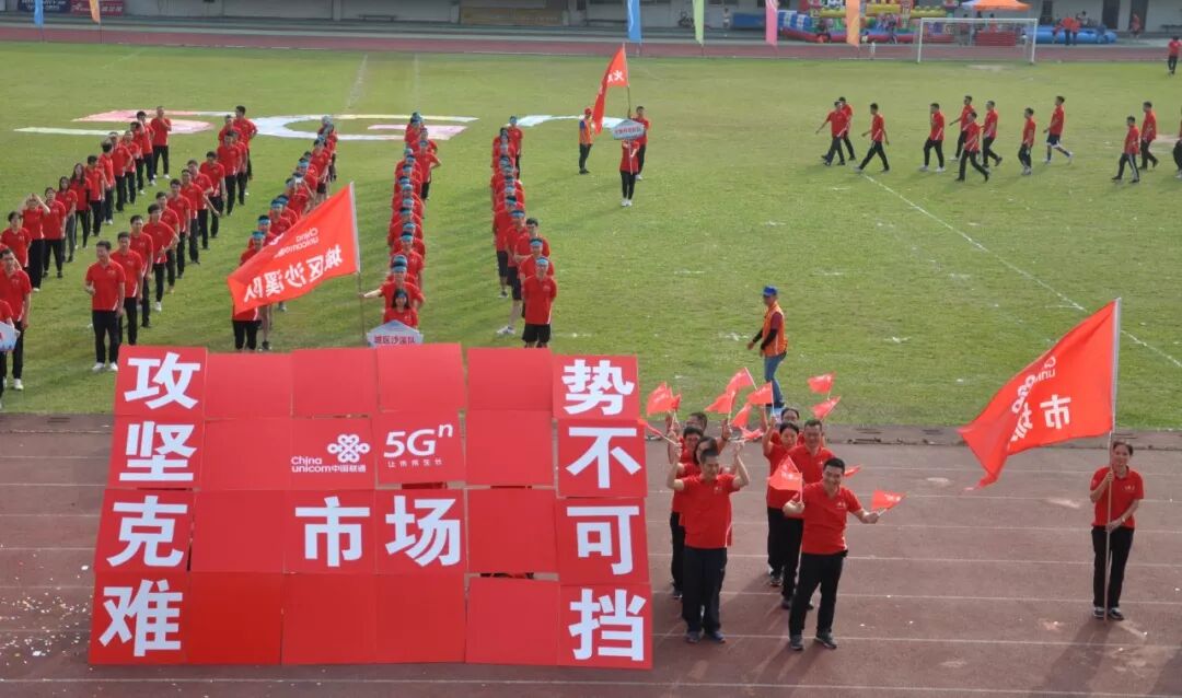 绿茵场上,5G?的造型和嘹亮的口号,展示了中山联通人对5G攻坚的信心和决心,红色跑道上,公司领导带领全体参与人员绕操场跑一圈,坚定的步伐,踏出了豪情万丈,2019年是5G元年,中山联通人也将发挥敢闯敢拼、永不言弃的精神,阔步奋进5G新时代。
