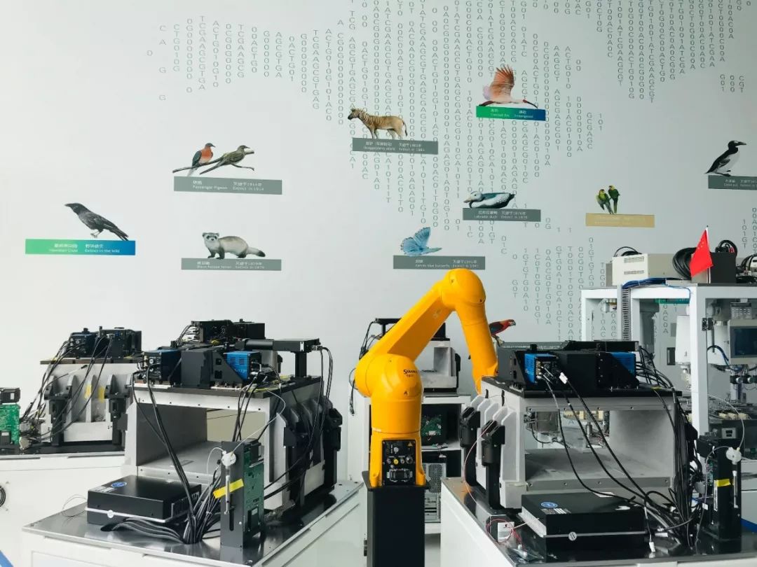 2011年,国家发改委批复,依托深圳华大基因组建国家基因库, 以对海量生物资源的存、读、写能力为基础,搭建起基因资源挖掘的公益性、开放性、支撑性、引领性服务平台。这里有很多先进的设备,大家可以在这里感受一下,科技的力量、